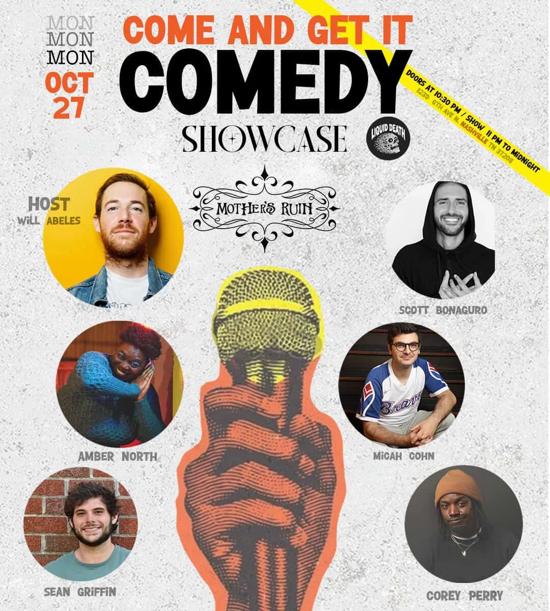 Case of the Mondays Comedy Show Monday, October 27, 2025 10:30 PM 11:30 PM 22:30 23:30 Mother's Ruin 1239 6th Avenue North Nashville, TN, 37208 United States (map) Google Calendar ICS New late night comedy show in the heart of Germantown neighborhood!Doors open at 10:30pm, show at 11pm